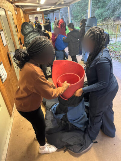 Groups getting ready for Gorge Walking or packing for their expedition today - 3 groups are camping out tonight.
